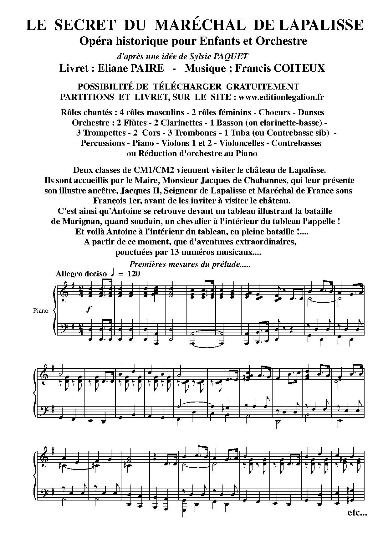 N° 1 REDUCTION PIANO CHANT (livret inclus) Prélude
